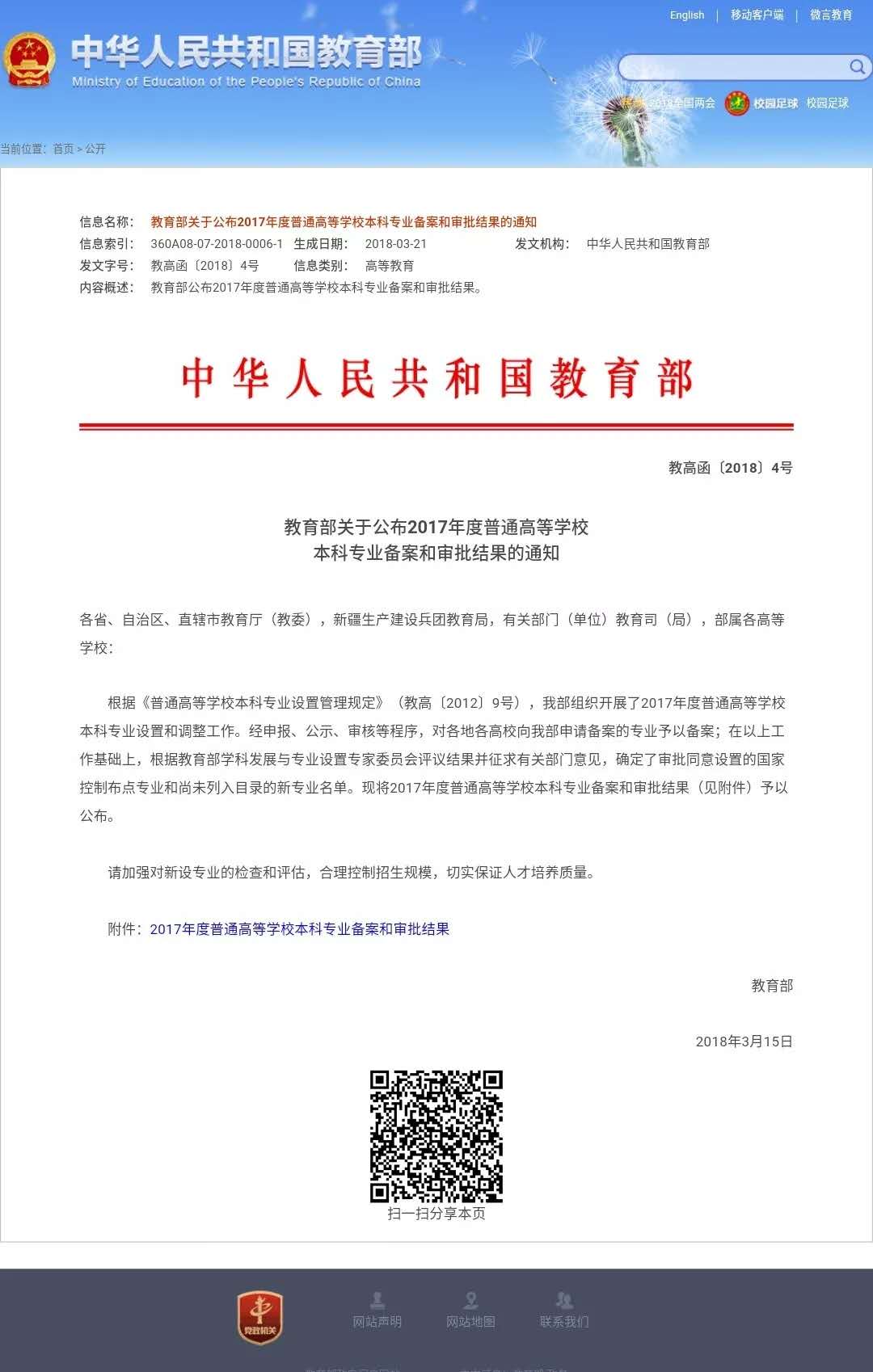 2018年3月21日,教育部发布《教育部关于公布2017年度普通高等学校本科专业备案和审批结果的通知》,我校风景园林、商务英语两个专业获批。