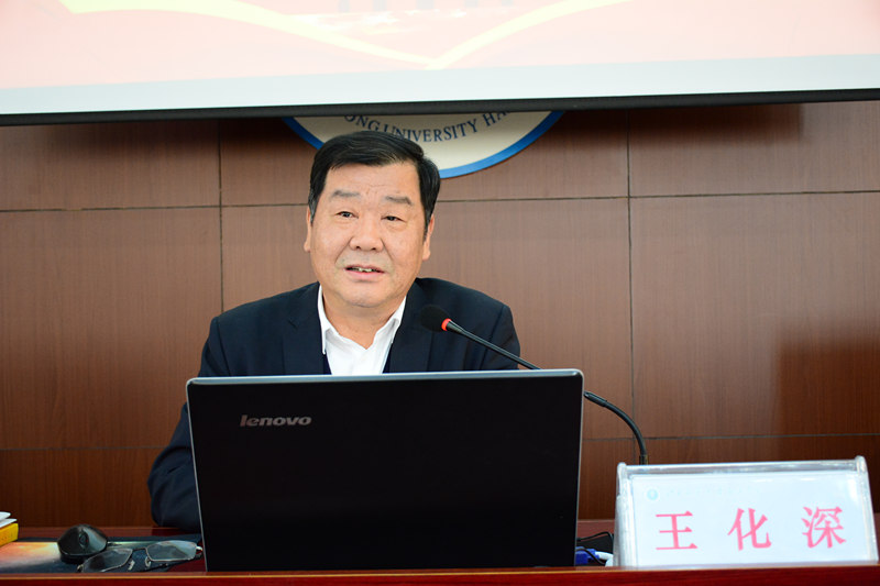 11月29日下午,“学习贯彻党的十九大精神宣讲会”在我校行政楼A512会议室成功召开。院长、党委书记王化深教授作了题为《学习贯彻党的十九大精神,加快推进高水平应用型大学建设》的宣讲报告。副院长、副书记张长铎,副院长徐爱国,院长助理任福义出席会议。全体中层干部、全体教师党员参加了宣讲会。宣讲会由副院长、副书记张长铎主持。