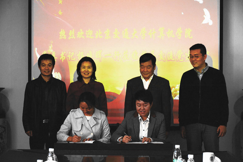 为深入贯彻党的十九大精神和习近平新时代中国特色社会主义思想,全面创新基层党组织建设,搭建共建平台。10月26日,北京交通大学计算机学院党委书记杨晓晖、党委副书记王浩业、副处级辅导员、研究生服务中心主任郭祎华、团委书记原晓敏一行莅临我校就“学习贯彻党的十九大精神 创新驱动基层党建工作”进行了共建交流。我校院长、党委书记王化深,副院长徐爱国,党委副书记魏炜,教工第一党总支书记、院长助理任福义,教工第二党总支书记、人事处处长任虹宇,学生党总支书记、学生处处长黄璐璐接待了杨书记一行并出席了此次会议。双方对党建管理工作新问题进行了探讨、积极创新交流合作,并签订了基层党建创新合作意向。会议由我校党委副书记魏炜主持。