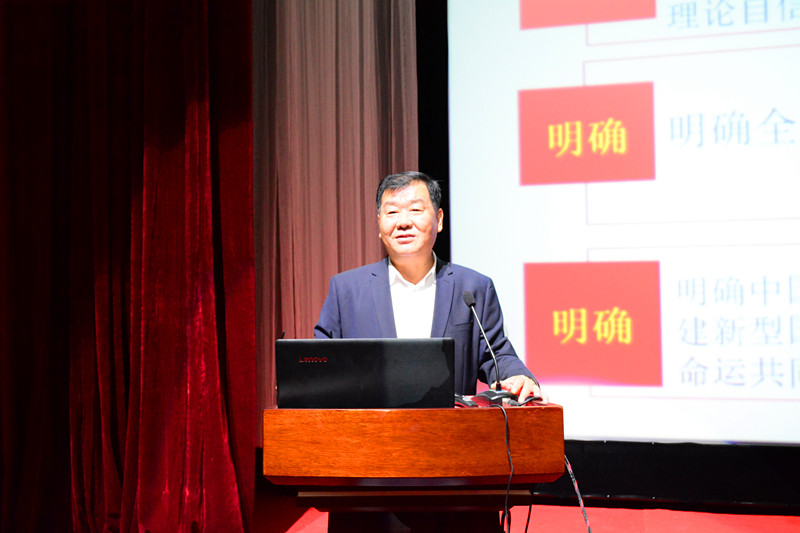 首先,王化深院长全面介绍了党的十九大的会议主题、三大成果和重要意义。在此基础上,王院长从新时代、新使命、新思想、新征程和新要求五个方面展开对党的十九大精神的全面梳理和详细解读。王院长提出以党的十九大精神指导我校工作,全校上下要坚定办学初心,提高教育教学质量,更要加强党的建设。最后,王院长引用了习近平总书记的话:"青年兴则国家兴,青年强则国家强。青年一代有理想、有本领、有担当,国家就有前途,民族就有希望"来鼓舞我校学子。