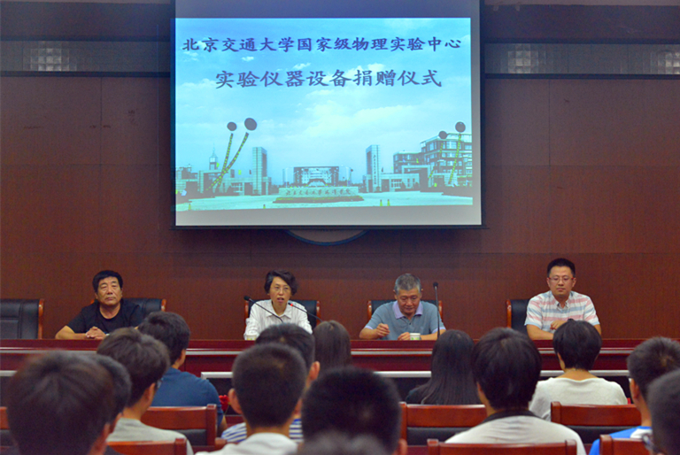 9月20日晚6点,为了促进我校物理实践教学工作发展,北京交通大学国家级物理实验示范教学仪式中心实验仪器设备捐赠仪式于我校行政楼五楼会议室成功举行。我院副院长张乐乐,北京交通大学陈征老师,相关职能处室负责人、教师和学生代表出席了本次捐赠仪式。