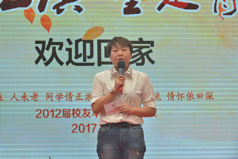 教师代表、学生处处长黄璐璐讲话。以自己亲身经历,感谢12届校友海滨学子对学校一直以来的信任与热爱。最后以诗意的话语寄托了对校友们"岁月增,水长流,情怀依旧深"的希冀。