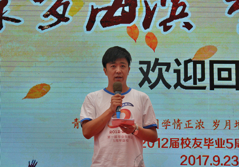 随后,12届学生代表高鹏飞发言,并代表12届校友向母校表示深深的思念与谢意。他回忆了自己在海滨的青春岁月,感怀了毕业五年来的人生经历,感谢母校培养的学习能力和忠厚精神对自己事业成长的帮助。他感叹海滨的日新月异,也为自己是一个海滨人感到骄傲。