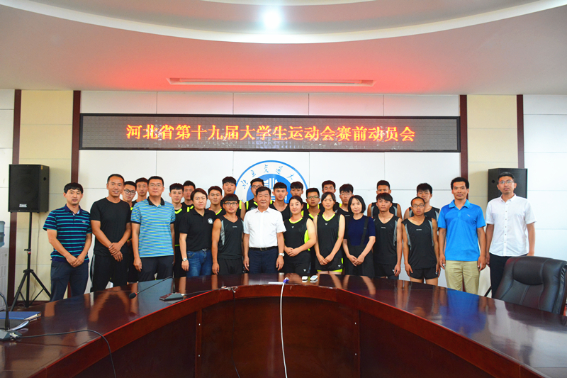 为迎接即将到来的河北省大运会,充分调动运动员的积极性,同时保障各项服务工作有序进行,我校7月6日上午举行了河北省第十九届大学生运动会赛前动员会。我院院长、党委书记王化深,党委副书记魏炜,学生处处长黄璐璐,基础教学部副主任田春子,体育教研室教师和运动员出席了动员大会。
