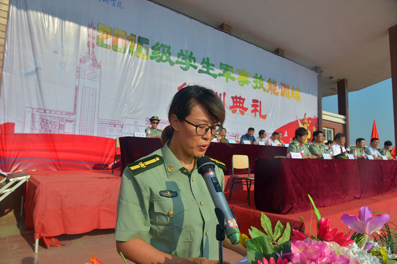 学生处处长黄璐璐宣读北京交通大学海滨学院2016级军训表彰决定