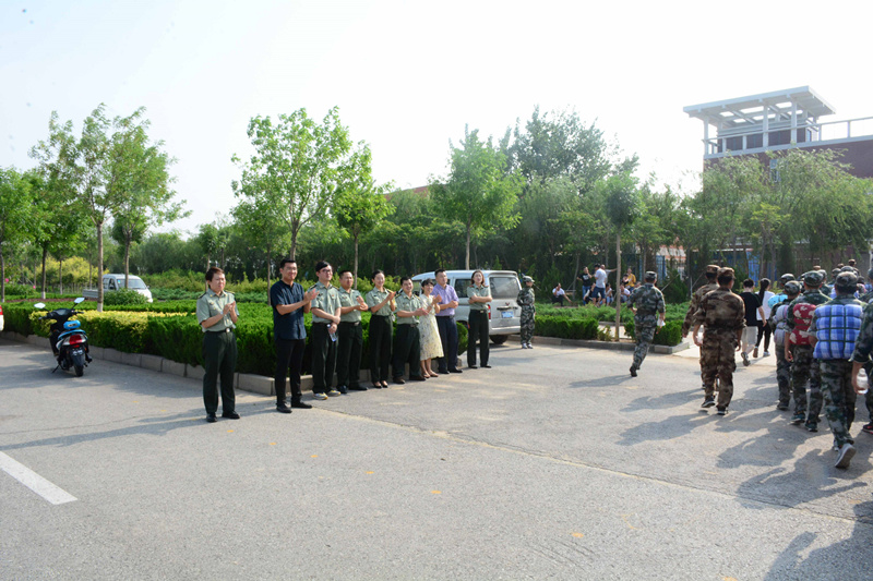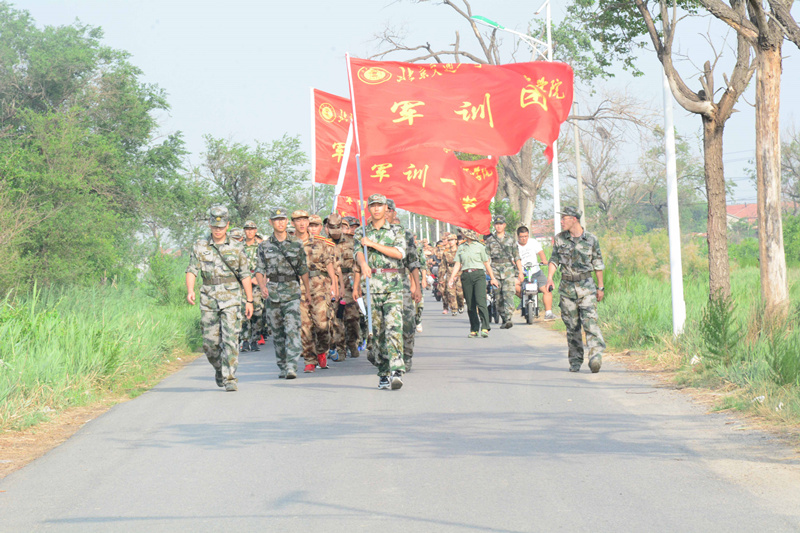 总指挥倪立萍干事对同学们进行了拉练动员讲话,在全体辅导员和教官的带领下,同学们以饱满的精神状态出发开始了军训拉练。本次拉练沿昌骅大街、渤海路、南王曼村、中王曼村一线等,全程共13公里。学校安排了尖刀班、后勤保障车、医疗救护车等车辆和保障人员,保障了拉练过程的顺利进行。