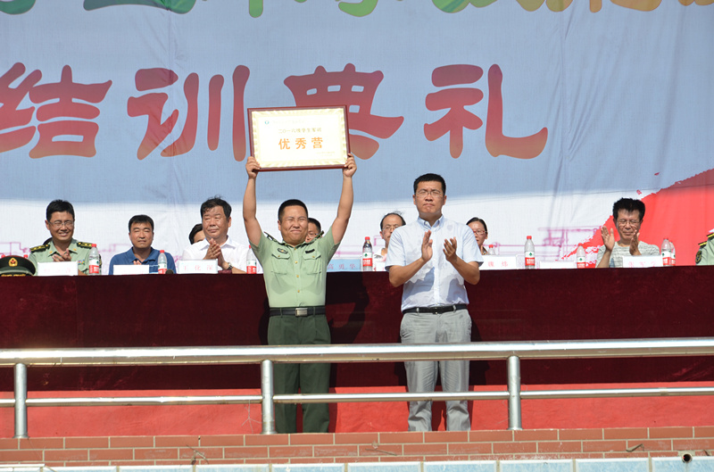 7月13日上午七点半,我校在操场隆重举行16级军训结训典礼。黄骅市人民武装部政治委员高勇华,中国人民解放军陆军第一选培办、北京交通大学选培办倪立萍中校,我院院长、党委书记王化深,党委副书记魏炜等领导出席了典礼。参加典礼的还有我校相关职能处室负责人、各系系主任、专业负责人、主任助理、各系团委书记及16级辅导员老师和全体16级军训学员。