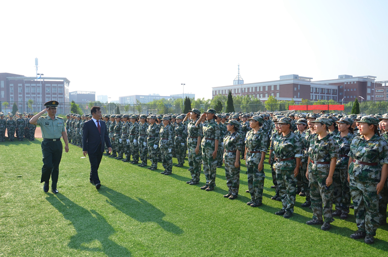 7月4日七点半,2016级学生军事技能训练开训典礼在学校操场举行。北京交通大学国防生选培办倪立萍干事,黄骅市武装部李英政委,我院院长、党委书记王化深,党委副书记魏炜以及相关职能处室负责人和各系团委书记出席典礼。