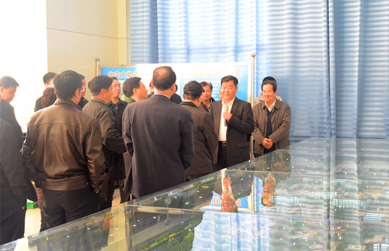 在行政楼一楼大厅,王院长向专家组简要介绍了我校基本建设情况和近年来取得的各项成绩,并就西校区的建设和北交大轨道交通海滨综合研发实验基地项目作了详细汇报。