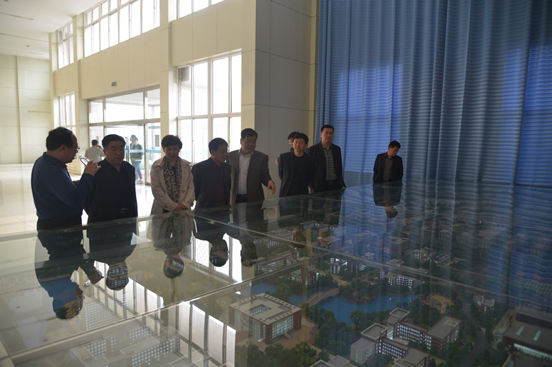 我校领导陪同黄骅市领导一行参观并介绍了我校校园和沙盘。
