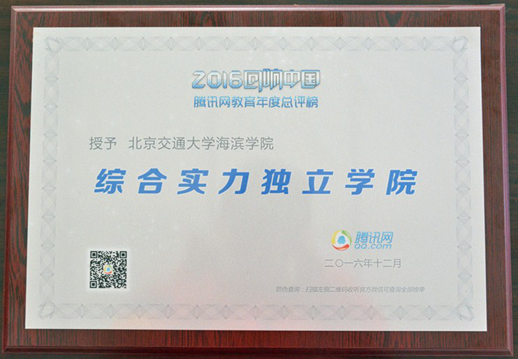 我校荣获“回响中国”腾讯网教育年度总评榜“2016年度综合实力独立学院”荣誉称号。