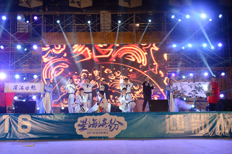 18时30分,随着充满动感的开场舞拉开了迎新晚会的帷幕。整场晚会分为 “梦起海滨”、“浩瀚星海”及“璀璨缤纷”三个篇章,晚会以不同的艺术表现形式向观众们展示了我校大学生朝气蓬勃、勇于创新的风采,既有异彩纷呈的机械舞、歌曲串烧,又有诙谐幽默的相声、小品,还有充满青春气息的器乐表演、诗歌朗诵、武术等节目。整场晚会气氛热烈,引发了观众强烈共鸣,全场喝彩和掌声不断。