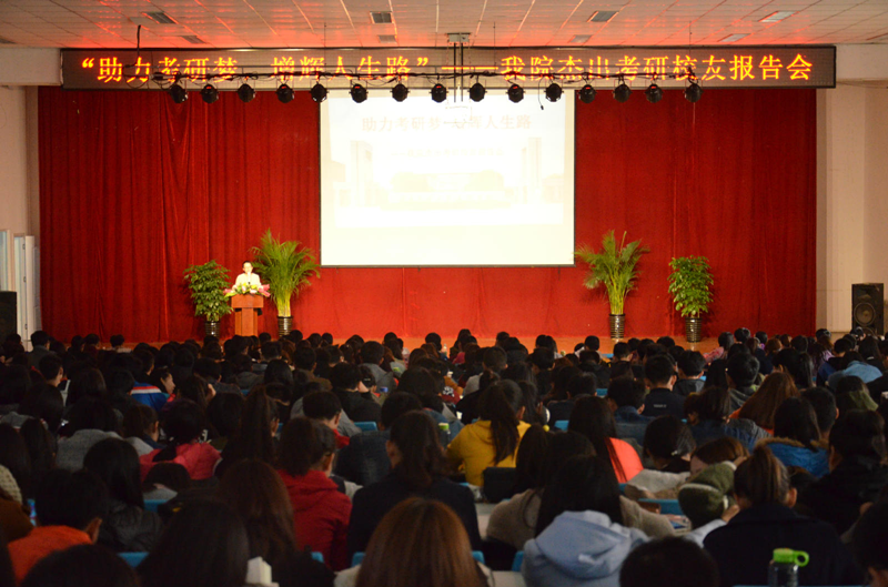 会上,我校三位杰出考研校友从考取硕士研究生的前期准备、考研复习的过程及被目标高校录取后的学习生活等方面为学弟学妹们分享了自身的心得体会,并对学弟学妹们提出考研方面的相关问题给予了建议。他们表示考研的过程需要科学的学习方法,更需要保持良好的心态,在努力为自身营造良好考研环境的同时,也要不断丰富自己的专业知识,为顺利考取理想高校不断积蓄力量。
