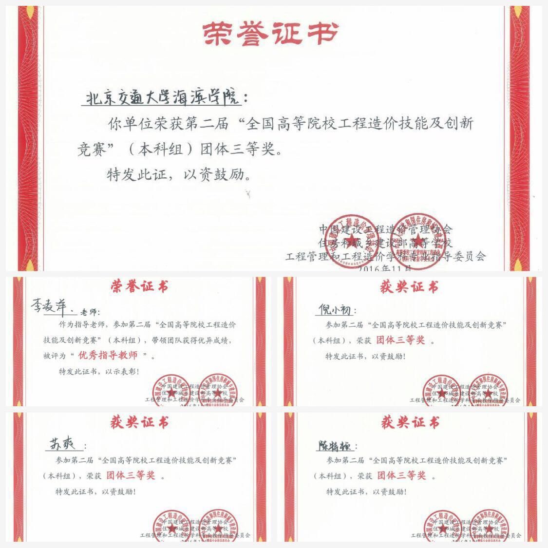 2016年11月5日,由中国建设工程造价管理协会、住房和城乡建设部高等学校工程管理和工程造价学科专业指导委员会、全国住房和城乡建设职业教育教学指导委员会工程管理类专业指导委员会主办的第二届“全国高等院校(本科组)工程造价技能及创新竞赛”在西安建筑科技大学举行。本次竞赛共吸引了全国91所高校102支队伍共计306名学生参加了比赛。我校代表队由土木工程系李凌洋老师带队参赛。