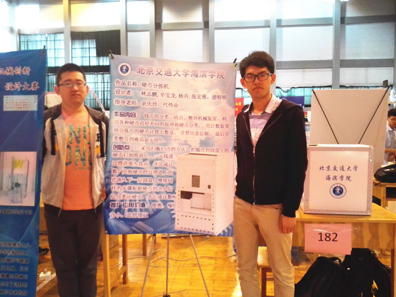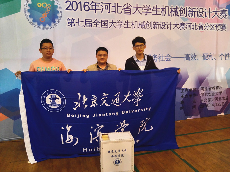 2016年4月22日至24日,2016年河北省大学生机械创新设计大赛暨第七届全国大学生机械创新设计大赛河北分区预赛在河北农业大学东校区举行。由我院机电系2013级学生林志鹏,辛宝龙,杨舟,张宏雁,游程明组成的代表队在代伟业老师的带领下参赛,最终,我院参赛作品“硬币分拣机”荣获省级三等奖。
