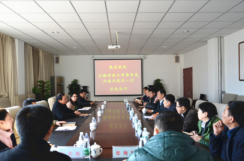 2016年3月10-11日,安徽财经大学商学院院长刘福成、副院长李冬一行5人来我院访问交流。我院院长、党委书记王化深,副院长、党委副书记张长铎,副院长薛爱兴,副院长徐爱国以及相关单位负责人接待了刘院长一行。
