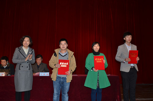 张乐乐副院长宣读了《关于表彰2015届毕业生就业工作先进集体及先进个人的决定》,对为我院2015届毕业生就业工作做出突出成绩的先进集体及先进个人给予表彰。王化深院长、张乐乐副院长、孙文博副书记为先进集体及先进个人颁奖。