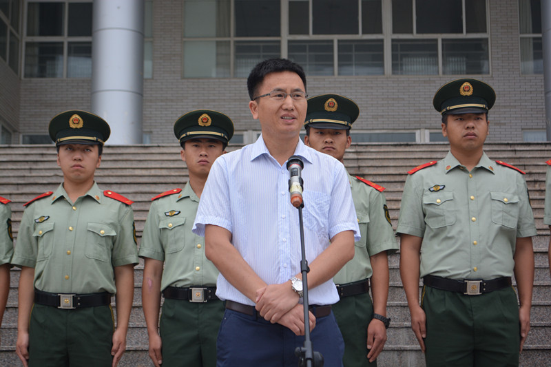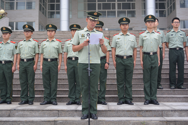 接着由孙文博副书记发言,他首先对14级小教官的表现进行了表扬和肯定,并认为同学们并不比参加纪念抗日战争胜利70周年的阅兵方阵逊色,并希望同学们好好学习将来还有可能借母校的机会参加国庆阅兵大学生方阵。