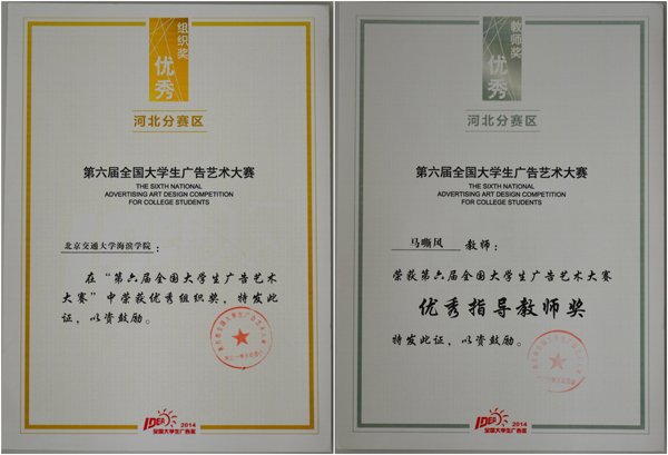 近日获悉,我院在2014第六届全国大学生广告艺术大赛上获奖。