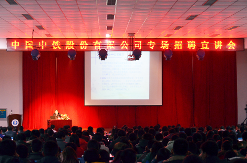 10日晚七点半,中铁股份有限公司党委干部部裴清宁副部长在我院实验楼报告厅作了精彩的宣讲报告,裴部长对中铁股份有限公司的发展概况、公司业务、企业文化、员工待遇等毕业生关注的问题做了详细的解说。同时,裴部长结合自身多年的招聘经验,向我院应届生重点介绍了大型央企、国企的用人标准,指出了目前大学生就业的几个误区并提出了合理的建议,为我院应届生求职提供了非常有效的帮助。裴部长的精彩报告博得了在场师生的阵阵掌声。