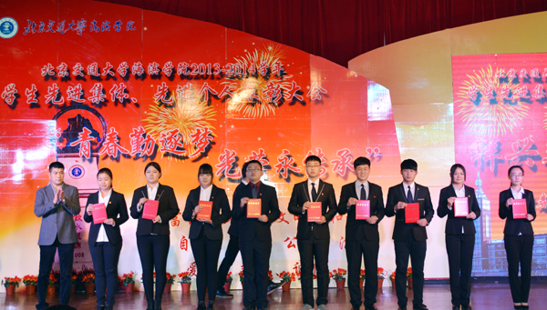 2015年1月3日晚6:30,以“青春勤逐梦,光荣永传承”为主题的我院2013-2014学年学生先进集体、先进个人表彰大会在实验楼报告厅召开。我院执行院长王大勇、副院长薛爱兴、副书记孙文博、副院长张乐乐、副院长徐爱国以及各相关单位负责人出席表彰大会。我院全体辅导员及获奖学生代表参加表彰大会。