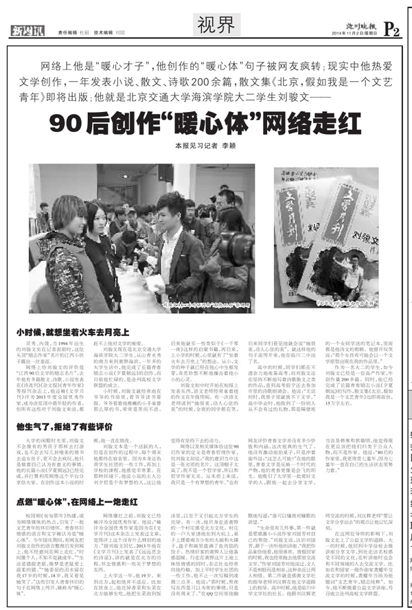 沧州晚报采访报道我院经济管理系1312班学生刘骏文