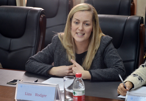 上午,王大勇执行院长在行政楼二楼会议室主持召开座谈会,对Liza Rodger 女士一行访问我院表示热烈欢迎,并从校园建设、专业建设、师资力量、生源结构、开放办学等方面介绍了我院的总体情况。Liza Rodger 女士对我院的热情接待表示衷心感谢,同时详细介绍了英国基尔大学的校园环境、专业设置、人才培养、办学特色、国际招生等情况,表示期待与我院开展长期广泛深入的交流与合作。随后,双方就硕士研究生合作项目的招生、青年教师互访交流等具体问题交换意见。