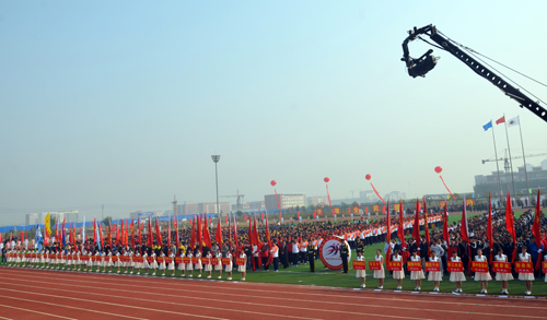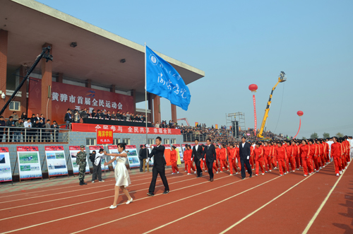 10月18日上午8:00,以“全民参与、全民共享、幸福全民”为主题的黄骅市首届全民运动会开幕式在我院运动场隆重举行。黄骅市委副书记、市政府市长潘海瀛,黄骅市委副书记董文昌等四套班子领导以及沧州市体育局局长马英利等出席开幕式。我院执行院长王大勇应邀出席开幕式并在主席台就座。黄骅市社会各界近3000人现场观看开幕式。开幕式由黄骅市政府副市长郑增强主持。