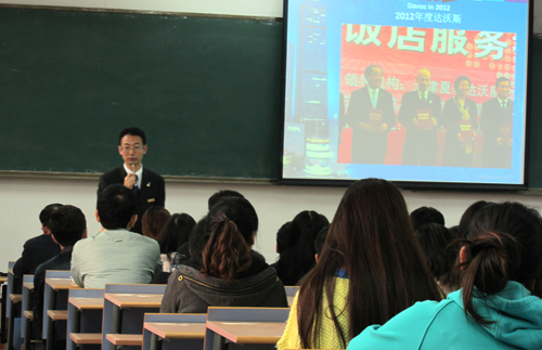 访问期间,Fantin先生一行还与我院经济管理系师生进行了面对面交流,重点介绍了海航集团唐拉雅秀酒店的企业文化以及天津中心唐拉雅秀酒店的相关情况。