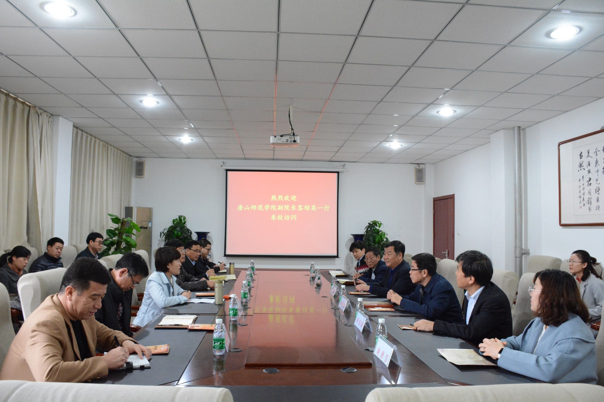 4月3日上午,唐山师范学院副院长客绍英率队,带领图书馆、国有资产设备处一行11人来我校参观访问。院长王化深、副院长张乐乐、副院长徐爱国出席交流会,我校相关单位负责人员参加会议。