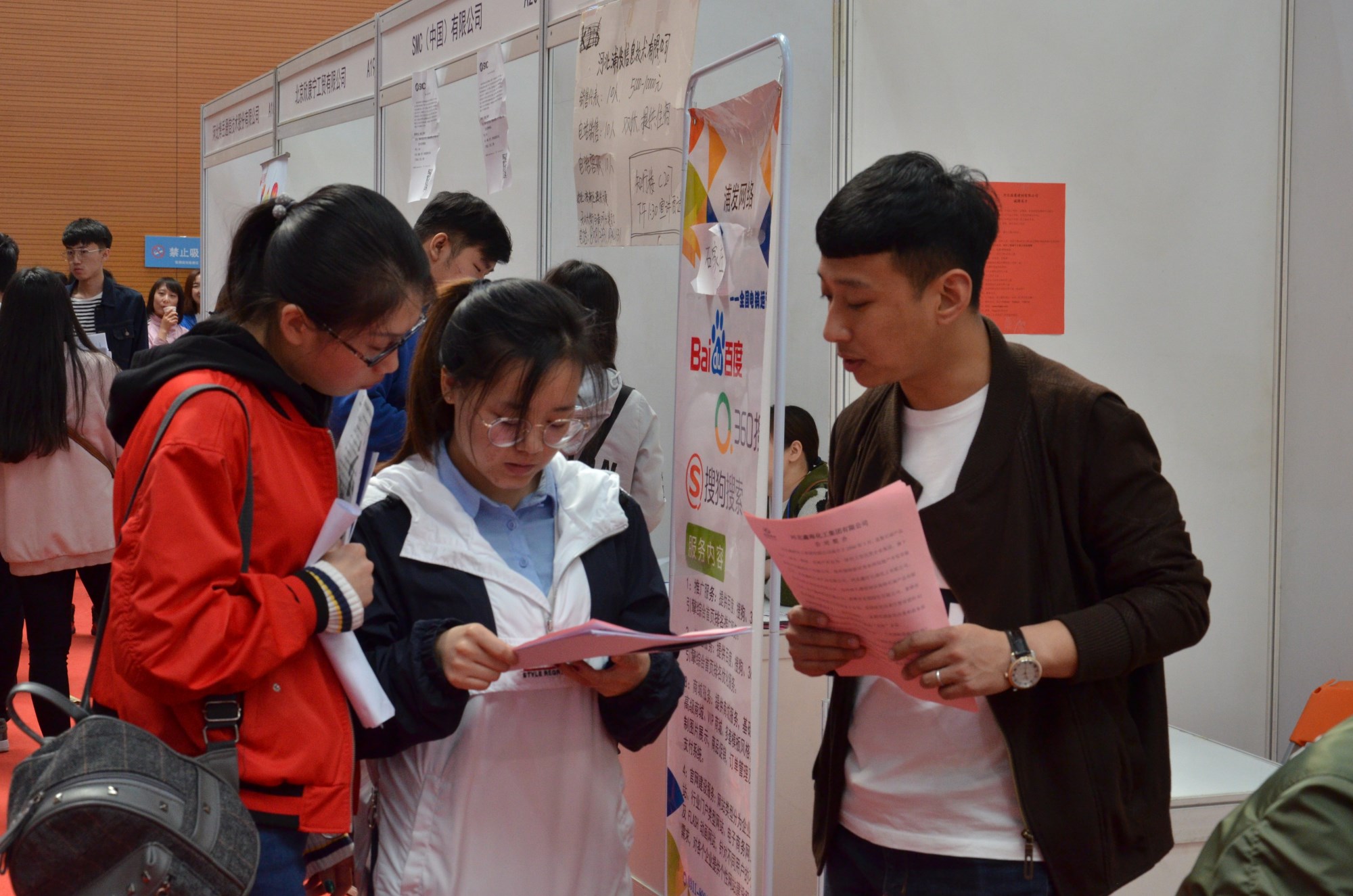 为给我校毕业生提供更多就业机会,搭建更好的就业平台,2018年4月11日,我校2018届毕业生春季大型校园双选会在体育馆举办,掀起我校毕业生春季求职新热潮。本场双选会共吸引了来自各行各业的优秀企业、单位前来招聘。最终,50余名毕业生现场签约,百余名毕业生达成初步就业意向。