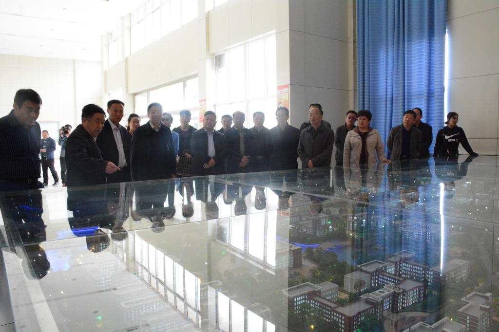 随后,考察团观摩了我校沙盘。张长铎副院长向考察团介绍了我校的办学规模等相关情况。