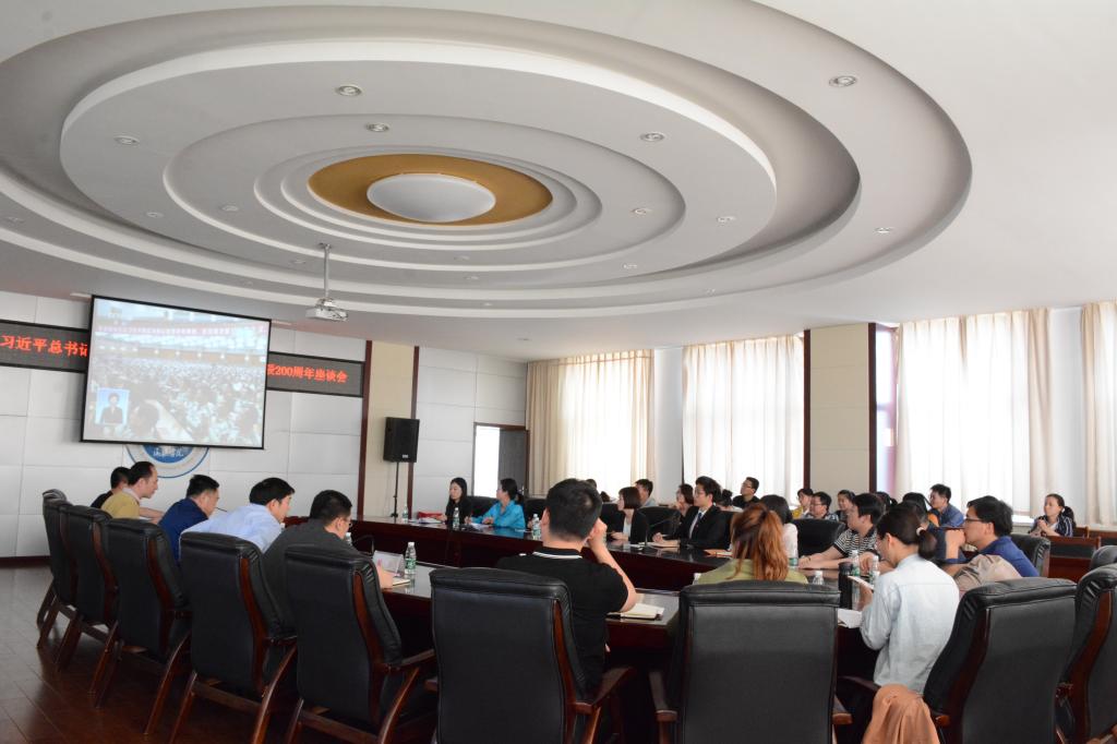 5月8日,我校学习习近平总书记北大讲话精神暨纪念马克思诞辰200周年大会讲话精神的座谈会在行政楼B512会议室成功举行。党委书记魏旺强,党委副书记、副院长张长铎,党委副书记魏炜,党委委员、院长助理任福义出席了本次会议,党委各部门负责人,各基层党支部书记,师生代表参加了本次会议。会议由党委委员、院长助理任福义主持。