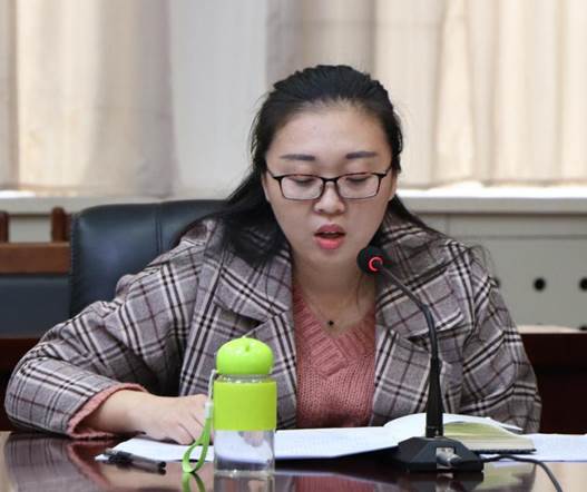 宣传统战部副部长、新闻中心副主任杨婷婷向参会人员传达全国省市宣传思想工作的会议精神,宣读习近平总书记在全国宣传思想工作会议上的重要指示,并部署下一阶段学校的新闻宣传工作。