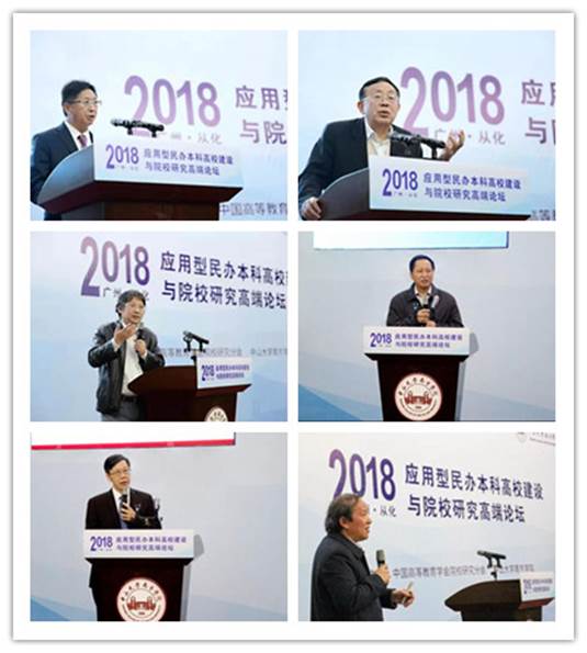 本次会议以“应用型民办本科高校建设与院校研究”为主题,特邀中国高等教育学会院校研究分会会长、华中科技大学学术委员会副主任、文华学院校长刘献君、教育部学校规划建设发展中心主任陈锋、广东省教育厅原厅长罗伟其、中山大学南方学院校长喻世友、副校长黄静波、中国高等教育学会院校研究分会副会长、厦门大学教育科学研究院院长别敦荣上台致辞并作大会报告。参会代表共同对民办本科教育、民办高校转型升级发展的必要性、主要任务和路径等重大课题进行了广泛而深入的探讨,对推动民办本科高校应用型转型发展,促进高校“冲一流、补短板、强特色”,实现内涵式发展,更好地肩负起培养人才、创新科技、服务社会的重要使命与责任这一重要任务深表认同,与此同时六场精彩纷呈的教授报告也引起了与会人员的热烈反响与认同。