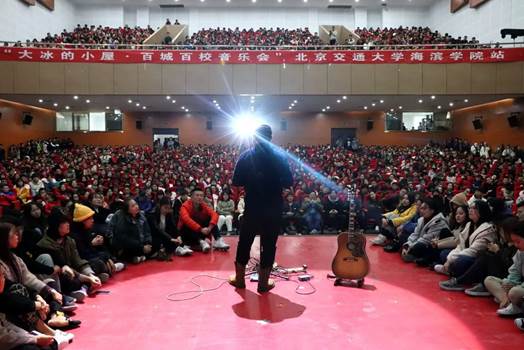 本次活动由“大冰的小屋”主办、我校全媒体工作室承办。从2015年10月开始,“大冰的小屋·百城百校音乐会”连续三年在全国各大高校举办。“谢谢你读过我的书,我有义务送你一次售后服务”是作家大冰对读者的一个承诺,大冰通过用稿费举办百城百校音乐会,让书中的主人公代替大冰,与读者面对面唱歌、交流这样一种方式,兑现着对读者的承诺。