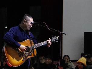 11月18日下午,大冰的小屋·百城百校音乐会于我校天佑会堂如期举行。我校学子与来自社会各界共1000多名读者与歌迷参加了此次活动。音乐会现场,王继阳、谣牙子两位音乐人为学生读者们演唱歌曲,同观众亲切交流。