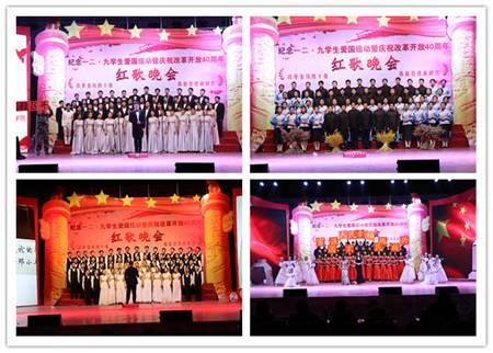 晚7时,“改革春风四十载,昂首迈进新时代”纪念“一二·九”学生爱国运动83周年暨庆祝改革开放四十周年红歌比赛于天佑会堂举行。我校党委副书记魏炜出席此次活动。相关职能处室负责人,各院系团委书记及辅导员参加了本次活动。