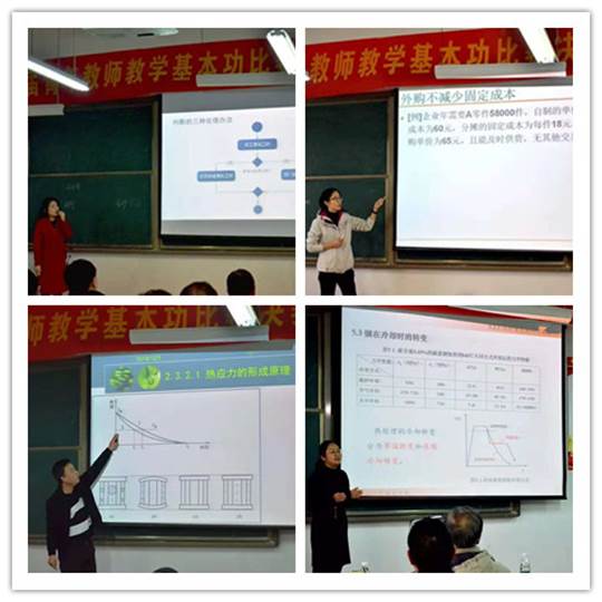 各参赛教师激情发挥,将理论知识与实践技能有机结合,用诙谐、幽默的语言带动现场氛围,细致描述课程的设计思路,生动形象地展现了各自学科的知识魅力,呈现出了良好的课堂教学效果,博得了评委和观摩教师的阵阵掌声,充分展示了我校青年教师坚实的专业基础、严谨的治学态度、扎实的教学基本功。评委专家对各位参赛教师精心准备的教学内容、新颖独到的教学方法和比赛中展示的教学风采给予充分肯定,并现场对各参赛教师的表现提出了个别化建议。