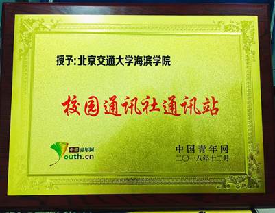 近日,我校获批成立中国青年网校园通讯社北京交通大学海滨学院通讯站。中国青年网校园通讯社,是在团中央网络影视中心指导下,由中国青年网主办,以青年师生为主体,以“讲好校园故事、传播校园好声音”为宗旨,依托中国青年网教育频道、三下乡官网、中青校园建立的宣传平台。中国青年网校园通讯社北京交通大学海滨学院通讯站的成立加强了我校与各学校的合作,全方位、深层次地推进我校新闻宣传工作,丰富我校校园文化生活,为我校和中国青年网的共同发展做出积极贡献。