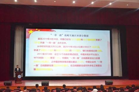 随后,王校长结合“一带一路”战略提出的历史背景,详细介绍了由此带来的文化价值、政治意义和现实意义,通过展示“一带一路”倡议实施以来的部分数据,向同学们阐述了随着“一带一路”倡议的不断推进,丝路文化在新时代被赋予了更加深刻的内涵和重要的地位。同时告诉同学们中国由穷到富、由富到强的崛起是靠信心、靠我国的发展理念而来。