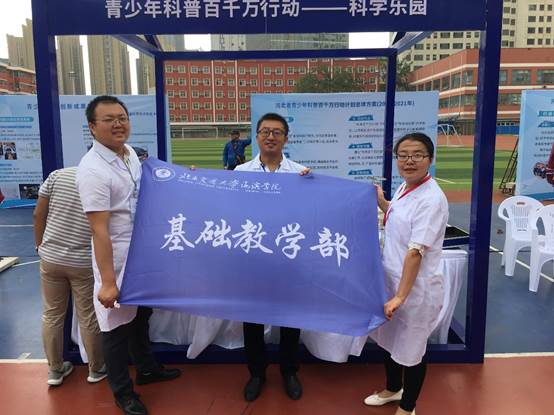 5月19日上午,以“科技强国,科普惠民”为主题的2019年河北省科技活动周暨青少年科普百千万行动启动式在石家庄一中举行,河北省人民政府副省长徐建培出席启动式并宣布活动周开幕。应河北省科技厅邀请,我校基础教学部大学物理教研室刘雪华、马俊刚、吴迪三位教师参加了科技活动周启动式。