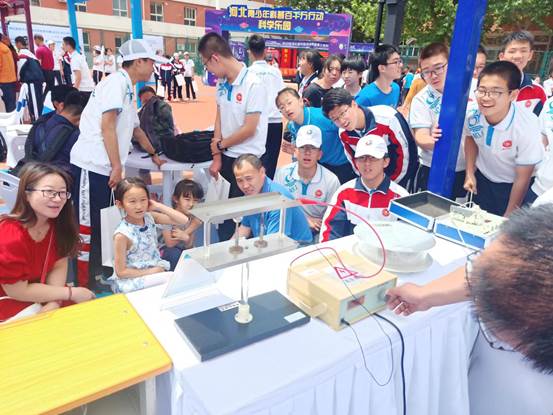 我校物理实验中心刘雪华、马俊刚、吴迪三位教师携带14项科普展品参加了此次活动,此次参展的仪器有电磁驱动、能量守恒台、穿墙而过等,三位教师,通过实景操作演练以及深入浅出的讲解为同学们提供了与科学近距离接触与互动的机会,激发了同学们对物理的兴趣,同时开阔了同学们的眼界,丰富了同学们的科学知识。