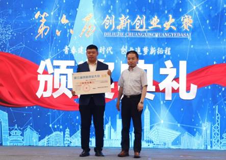 天使投资人刘建龄先生为亚军团队颁发证书以及创业补贴5000元。