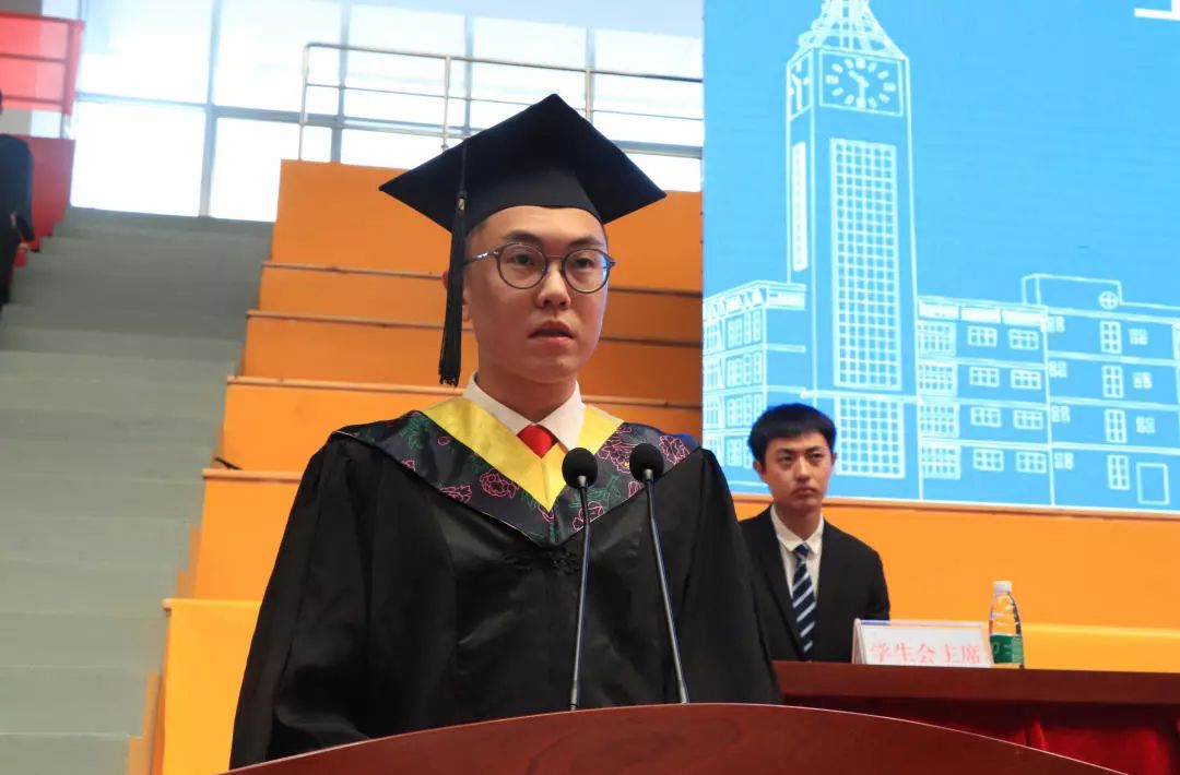 土木建筑工程学院李佳根同学代表2019届毕业生们表达了对老师的感谢和对母校的不舍。他深情回忆了大学四年生活,并表示会牢记“进德修业、知行合一”的校训,恪守道德、勤于实践、真诚待人、踏实做事,一步一个脚印书写新的人生篇章。