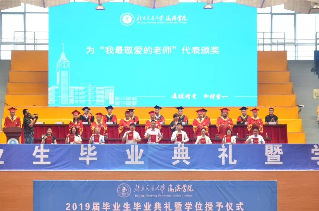 6月20日,我校2019届毕业典礼暨学位授予仪式于海滨体育馆隆重举行。北京交通大学党委副书记、纪委书记郭海,黄骅市人民政府副市长张桂云,我校院长王化深,党委书记、副院长魏旺强,副院长、党委副书记张长铎,祥兴集团副总裁、副院长薛君南,副院长徐爱国,总会计师余裕玲,党委副书记魏炜出席了本次毕业典礼,各二级学院院长、教师代表、全体毕业生参加了毕业典礼。典礼由党委副书记魏炜主持。
