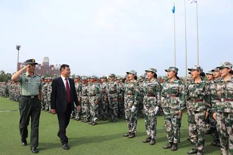 7月8日下午,我校在操场隆重举行2018级学生分列式暨结业式典礼。我校校长王化深,党委书记魏旺强,北京交通大学国防生选培办、海滨学院2018级学生军训团团长倪立萍上校,党委副书记魏炜,土木建筑工程学院院长陈凡丁,外国语学院院长张军学出席本次典礼。一同参加的还有相关职能部处负责人,各二级院(系)副院长、副主任,学工办主任和辅导员老师。本次活动由学生处副处长、武装部副部长翟砚辉主持。