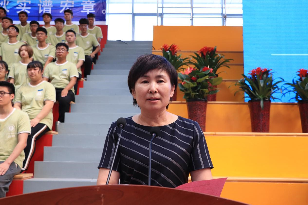祥兴集团总裁薛行远为开学典礼致辞。向2019级新生提出三点希望:一、鼓励同学放大格局、立志高远;二、端正学习态度,养成自主学习的良好习惯;三、积极投身实践,尝试新事物,拓展新视野,培养开放自信、团结包容的美好品质。