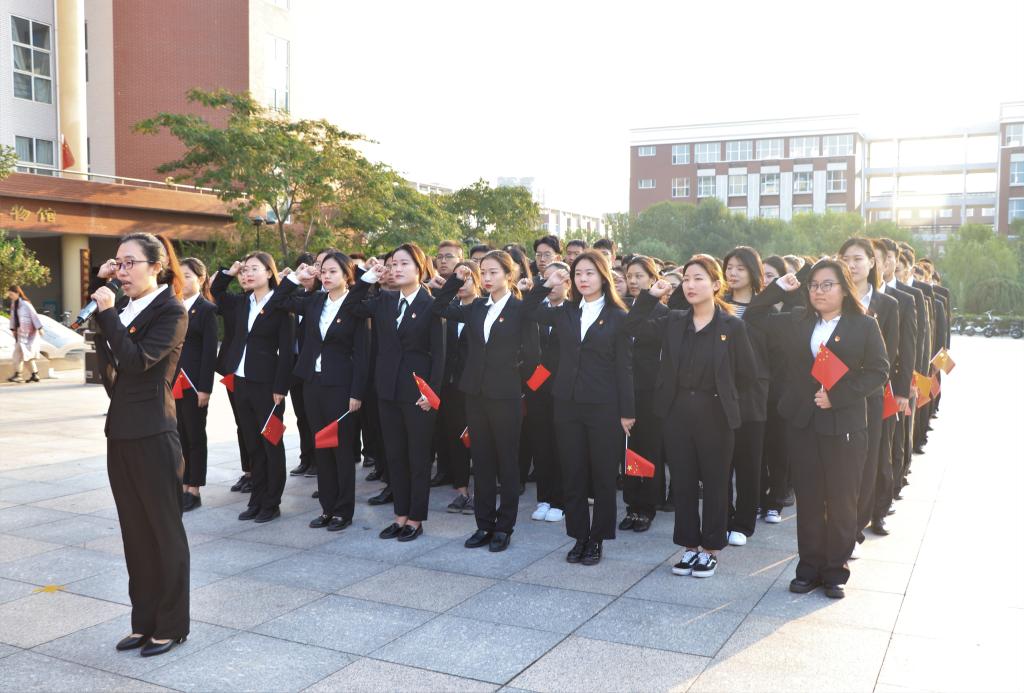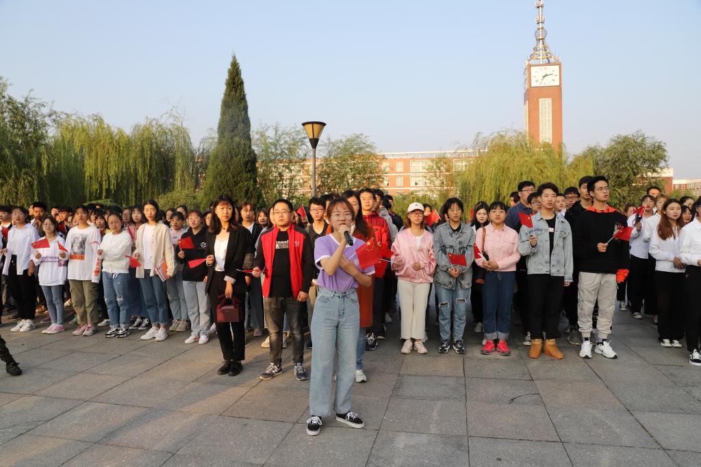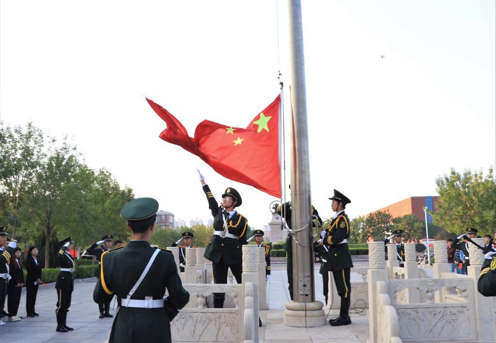 9月23日上午7点,为庆祝新中国成立70周年,弘扬爱国主义精神,激励我校师生振奋精神、拼搏进取。我校在图书馆南侧中心广场隆重举行以“我与祖国共奋进”为主题的升旗仪式。党委副书记魏炜,各相关职能(部)处室负责人,各二级学院(系)负责人,全体辅导员老师、师生党员代表、各二级学院(系)学生代表参加此次活动。学生处副处长翟砚辉主持此次升旗仪式。