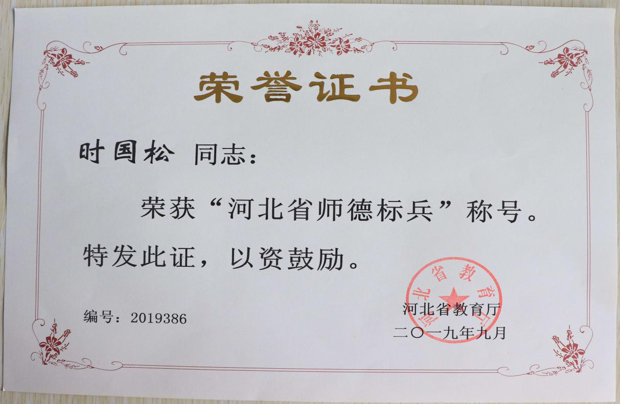 按照河北省教育厅、中共河北省委机构编制委员会办公室、河北省发展和改革委员会、河北省财政厅、河北省人力资源和社会保障厅印发的《河北省教师教育振兴行动计划(2018—2022年)》要求,全省开展2019年度师德标兵评选活动。我校土木建筑工程学院副院长时国松荣获“2019年度河北省师德标兵”称号。